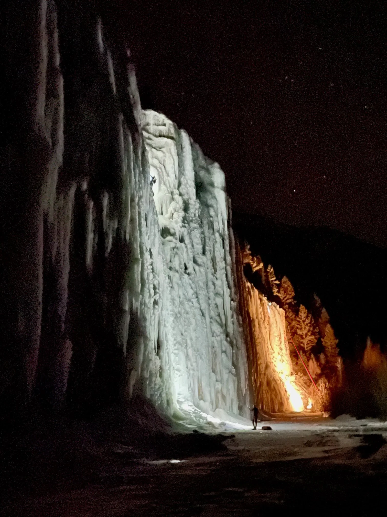 We were able to get Rolly-Poly running a week ago and there is a bit of new ice there, so look for that. There is a somewhat hidden low-angle gully that goes all the way to the top. I am thinking that it might become our new longest route, but it hasn’t been climbed yet.