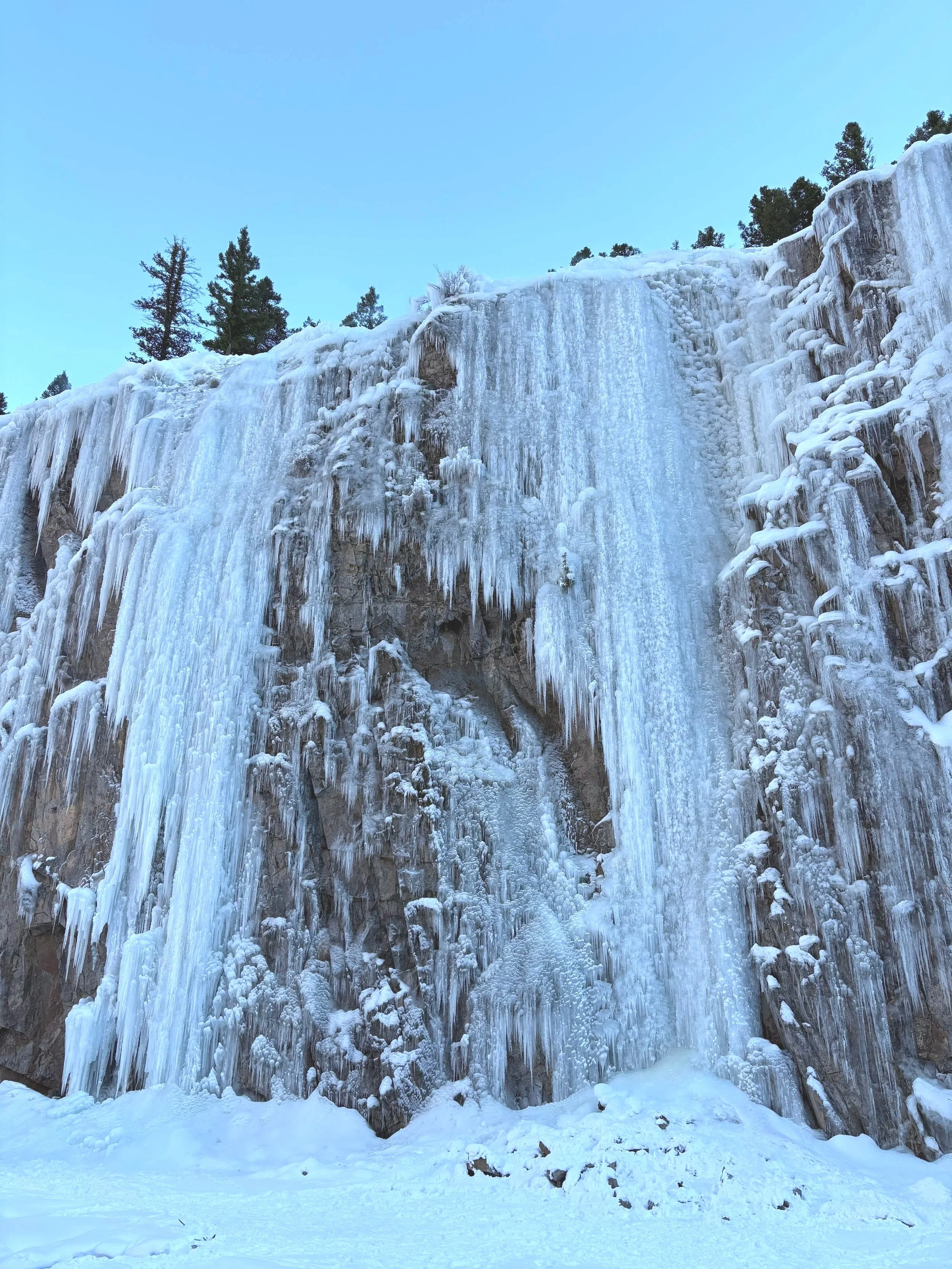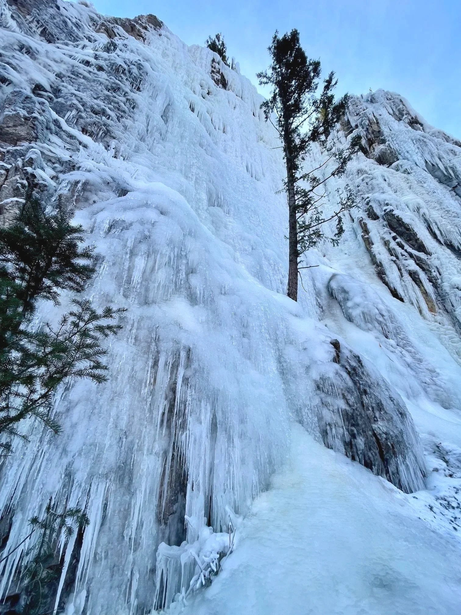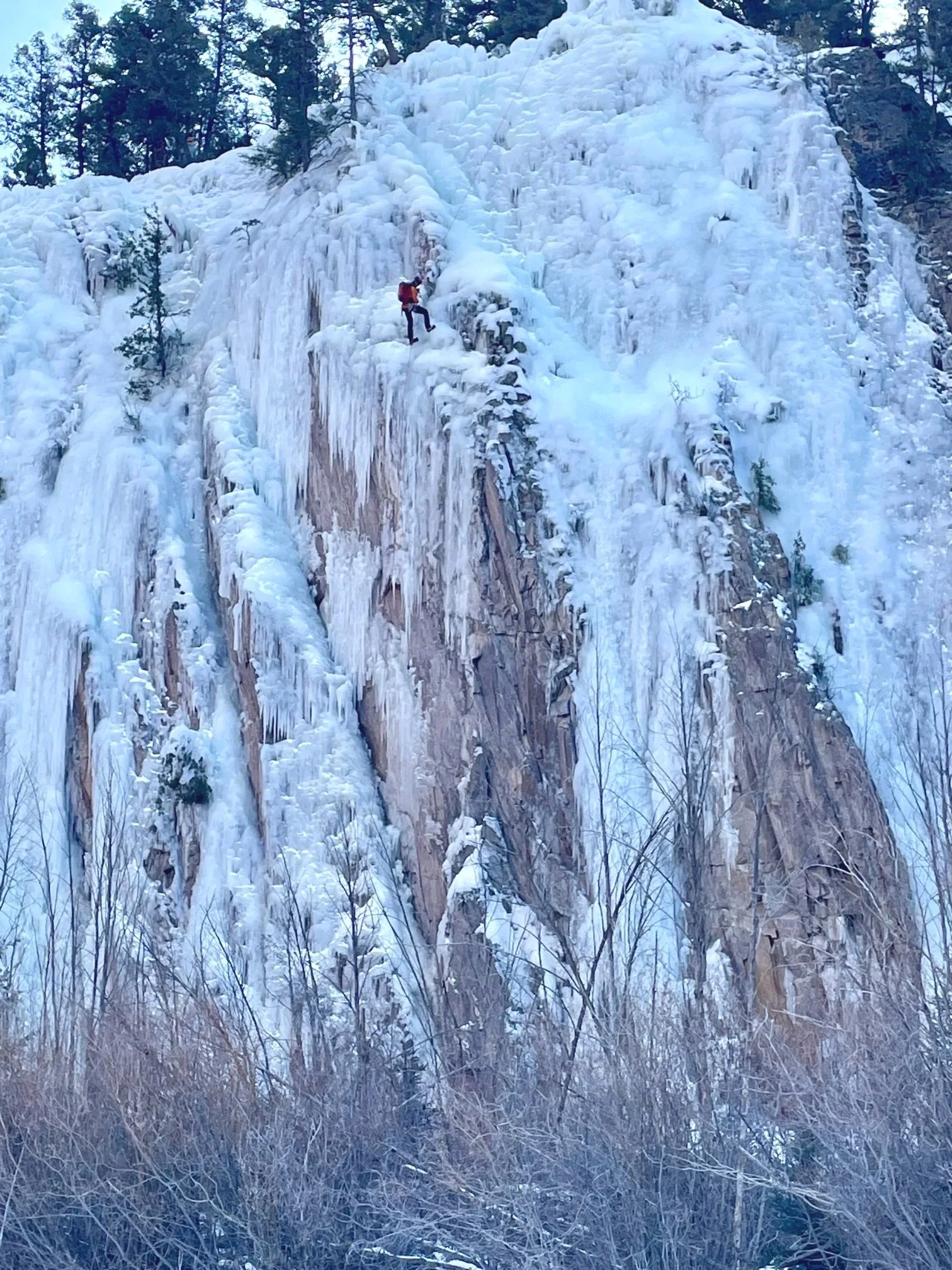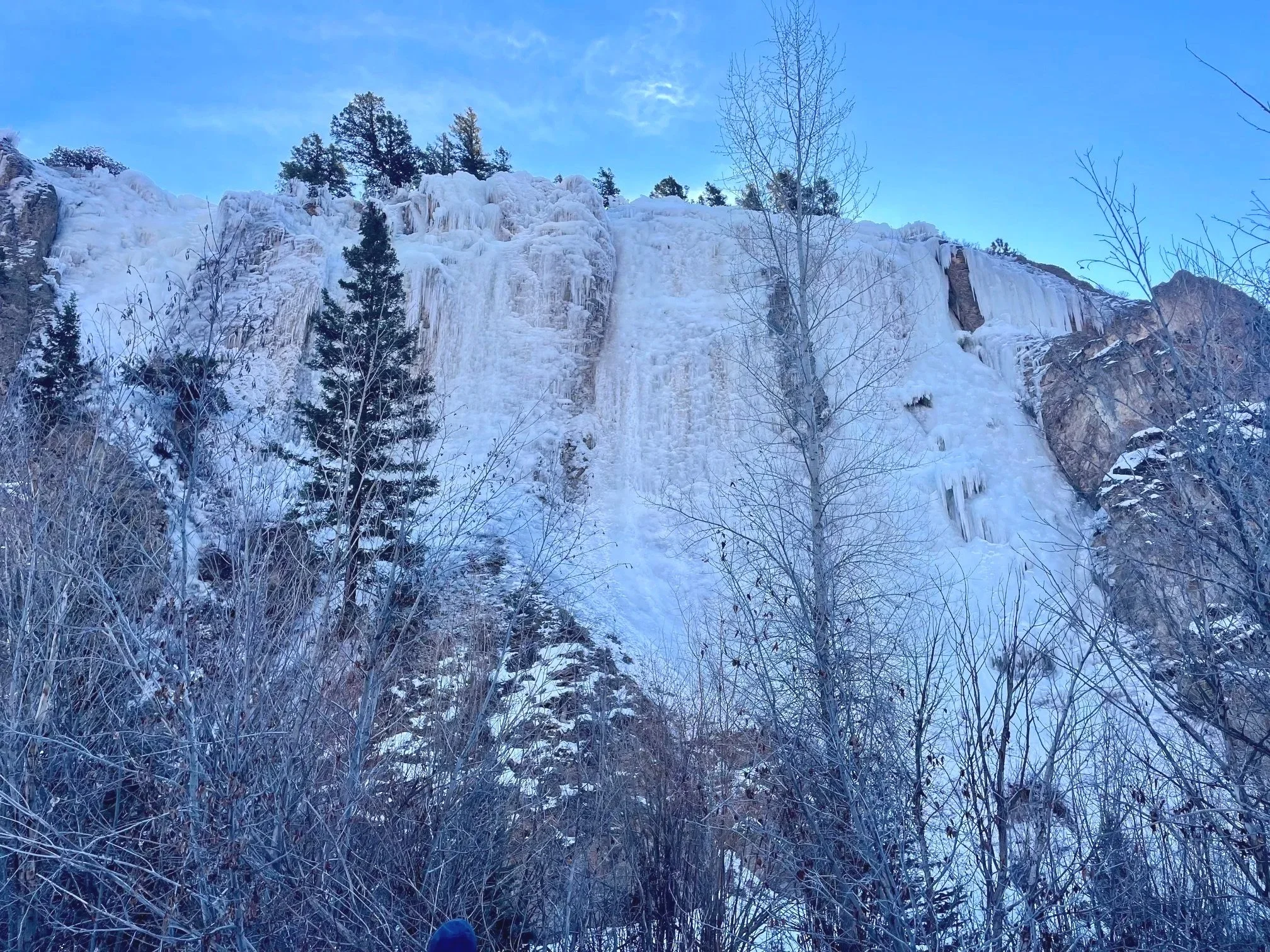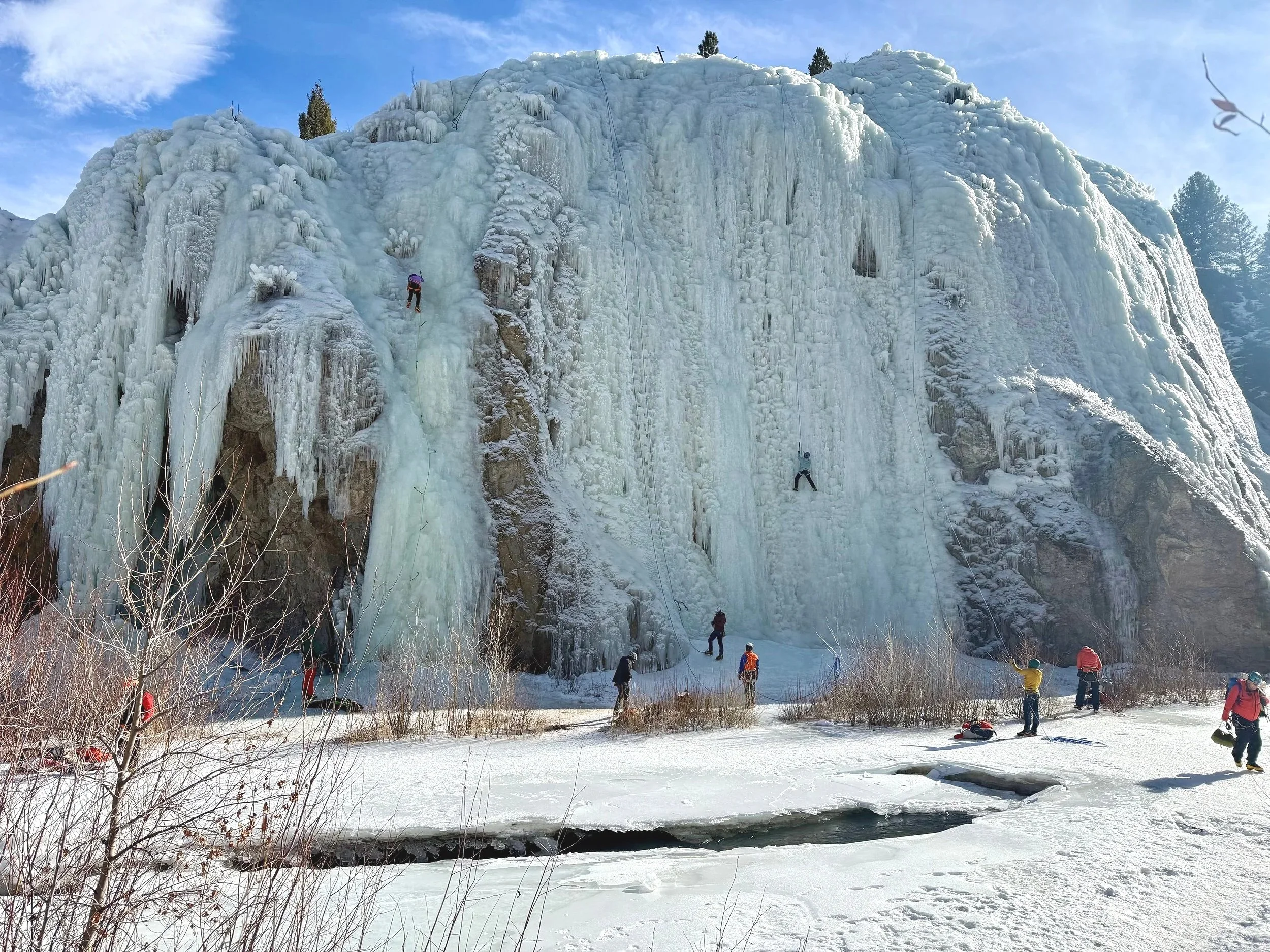 It’s warming up again. Plan on the climbs being wet. Check the top of your route for hazards- detached ice or ice hanging from trees. If you see a hazard you can always pick another route OR best practice is to knock any loose ice down when you are at the top setting up. Have someone in your party at the bottom of your climb to make sure no one is within 50’ and remove any ice that looks precarious while rappelling down.